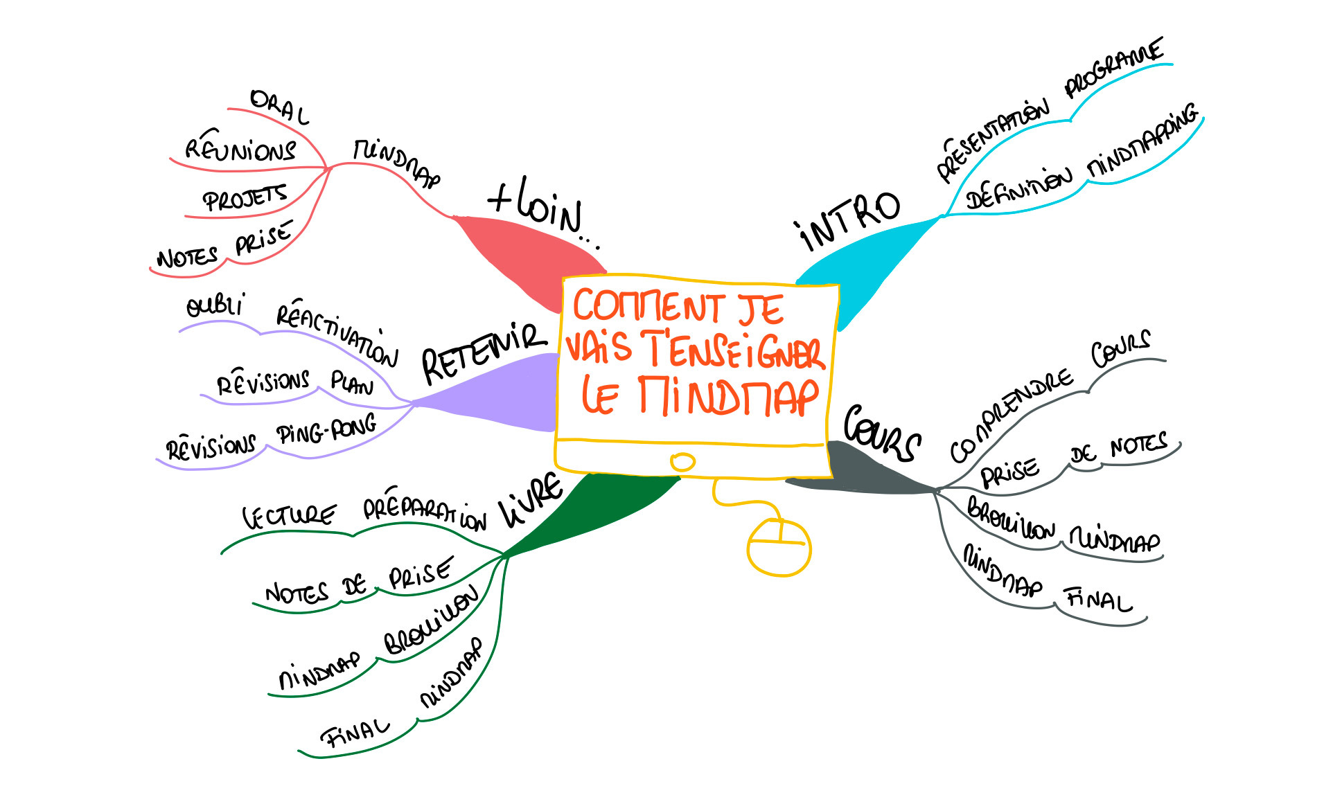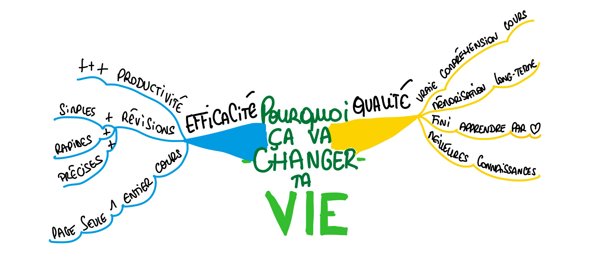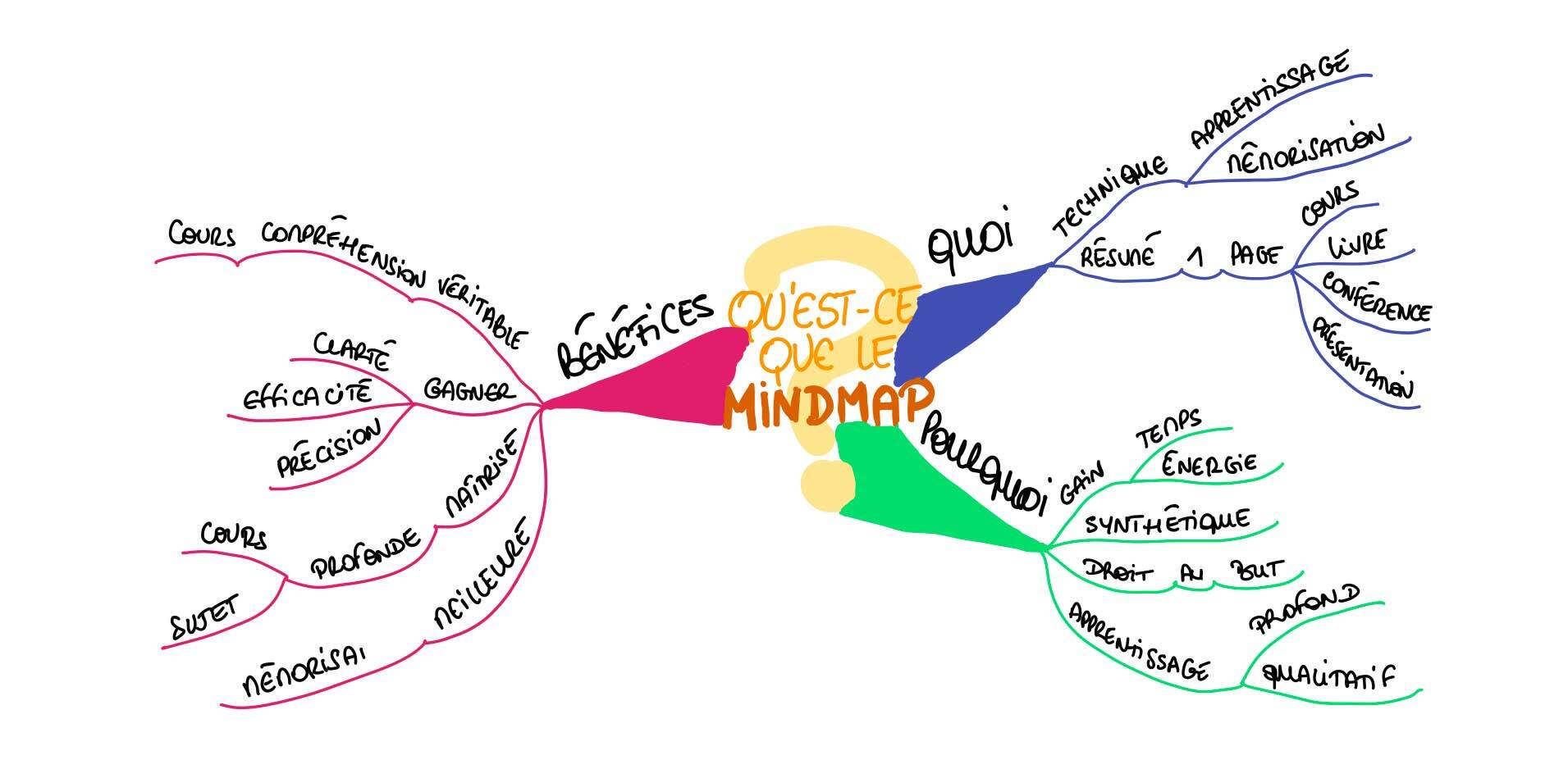 Le mindmapping c'est la méthode qui te permet de passer de 20 pages de notes à une seule page